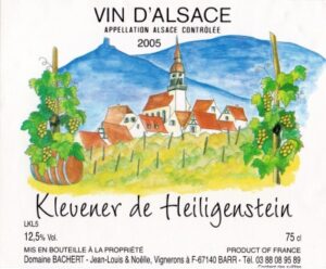 Beblenheim Domaine Bachert – Barr Paradmin 27 février 201810 décembre 2025 Visiter son site Particularités : étiquettes de Jean-Louis et Noëlle (Noëlle à repris le domaine en 1997) Grand Cru Kirchberg de Barr Klevener de Heiligenstein Clos Feyel 11 étiquettes Barr ?