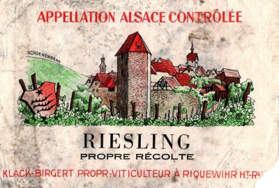 Riquewhir Klack-Birgert – Riquewihr Paradmin 6 août 2024 Porte la mention « Schoenenberg » pour indiquer le lieu-dit, avant qu’il ne devienne un Grand Cru en 1992
